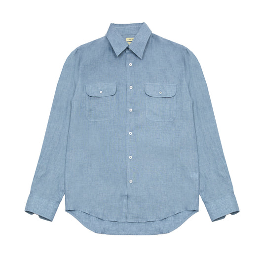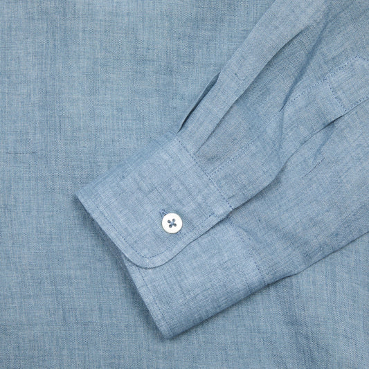 De Bonne Facture Artist Light Linen Shirt in Chambray Blue