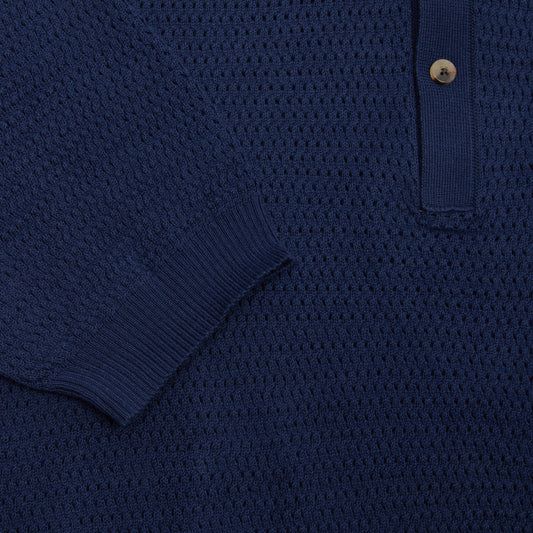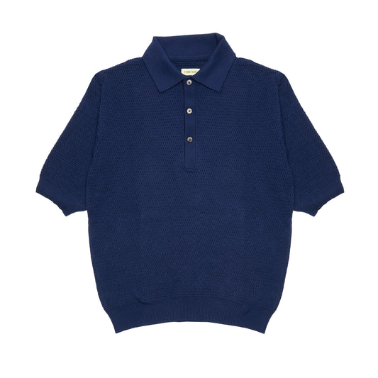 De Bonne Facture Honeycomb Knitted Polo in Navy