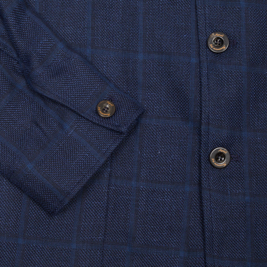 Finamore Tokyo Luigi Cotton/Linen Shirt in Midnight Blue