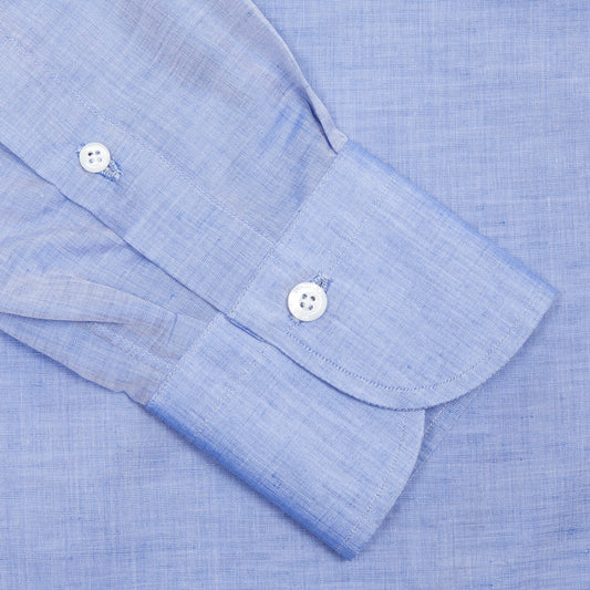 Finamore Napoli Cotton/Linen Blend Shirt in Blue