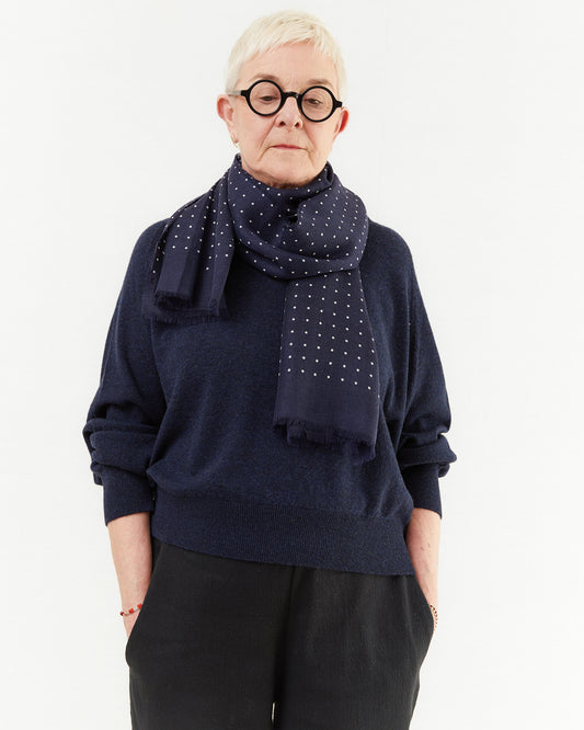Begg & Co Wispy Hanover Cashmere Scarf in Navy/White