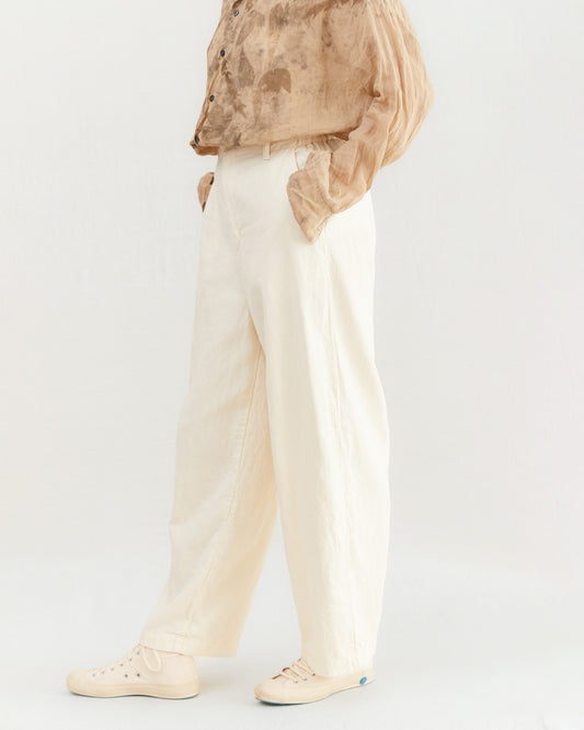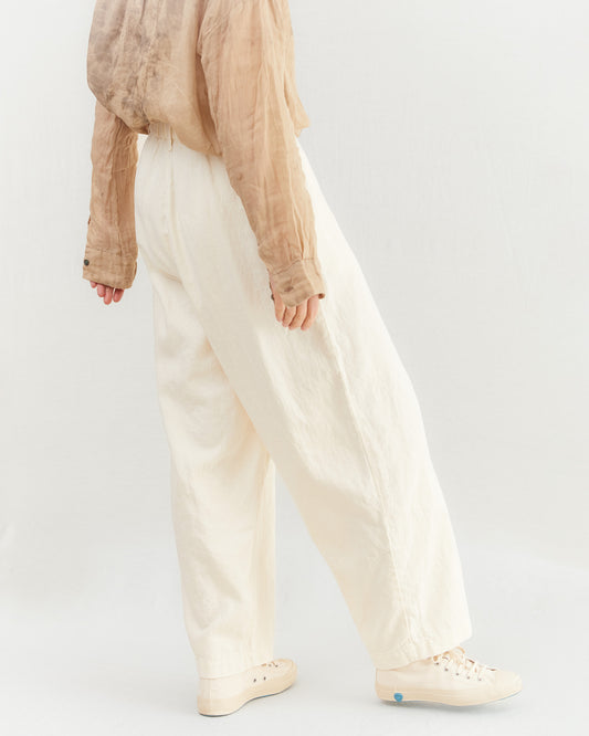 Pas de Calais Linen Cotton Satin Wide Trousers in Natural