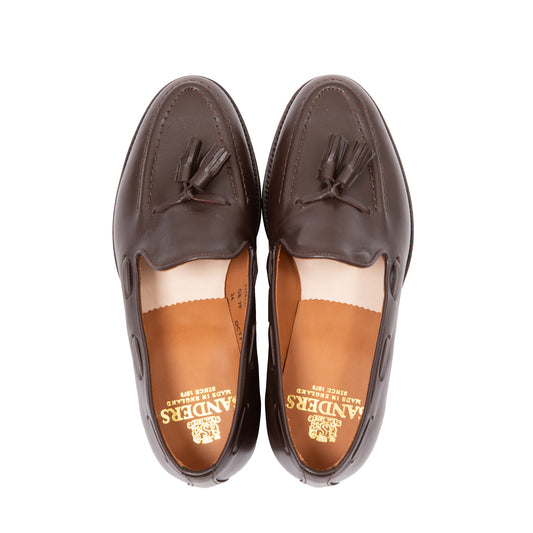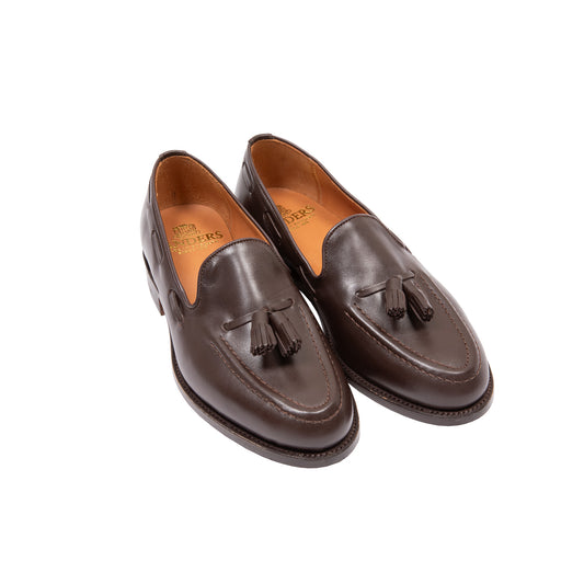 Sanders Finchley Tassel Loafer in Dark Brown Leather