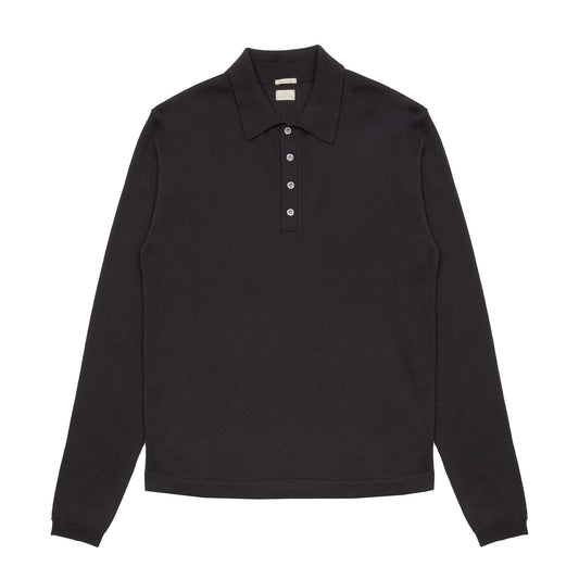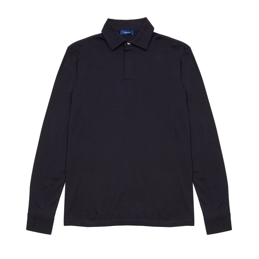 Albeni Merino Long Sleeve Polo Shirt in Night Blue