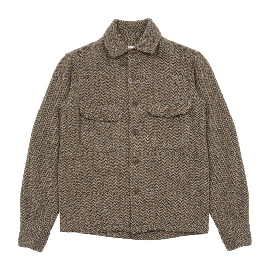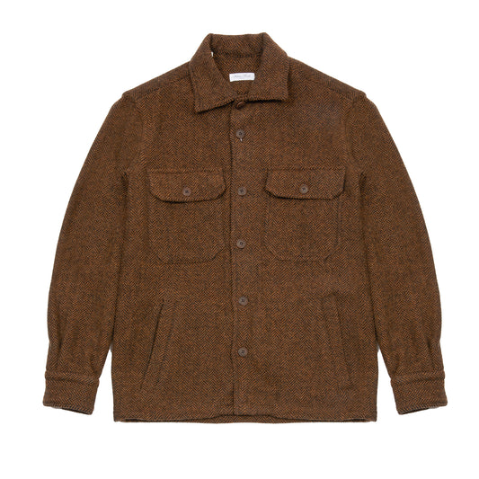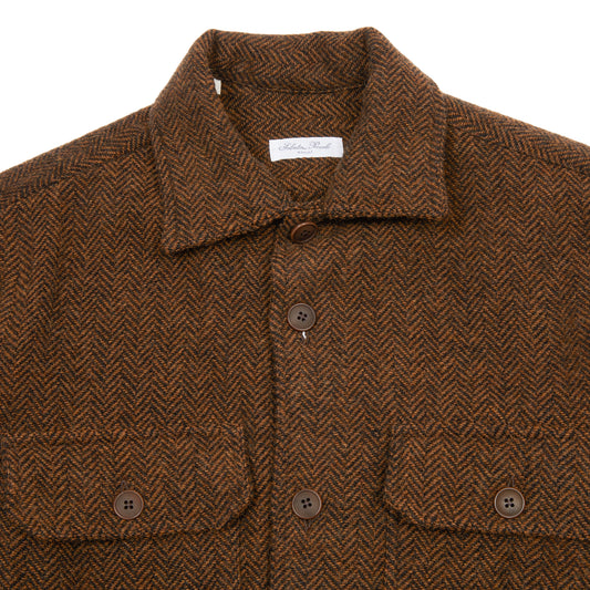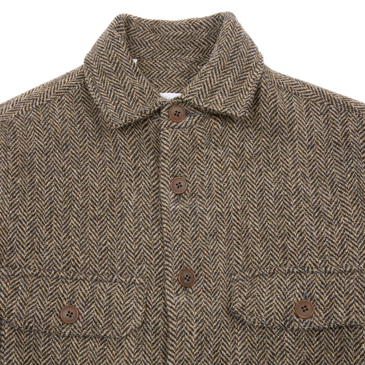 Salvatore Piccolo Bert Wool Overshirt in Brown Herringbone