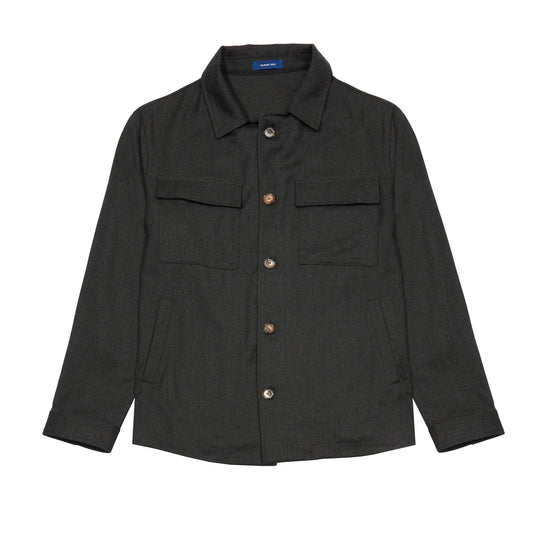 Salvatore Piccolo Zima Wool Overshirt in Grey Herringbone