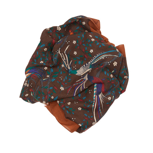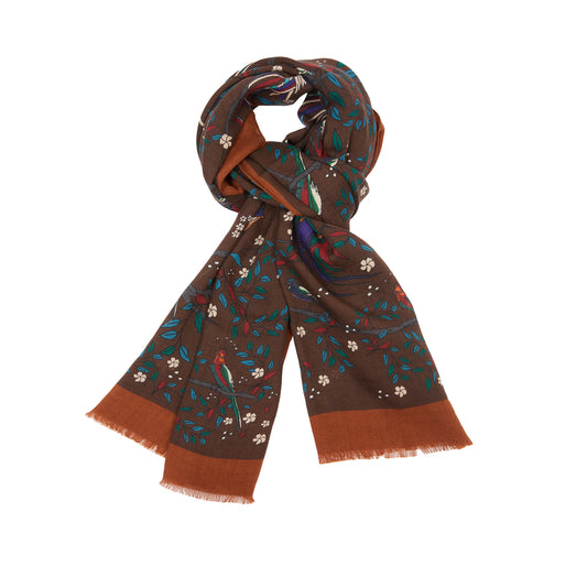 Drake's Birds of Paradise Print Wool Scarf in Brown