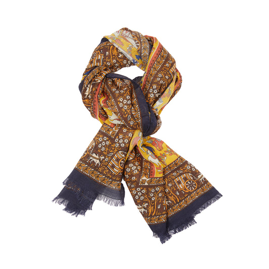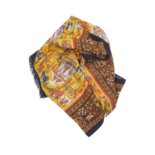 Drake's Elephant Village Wool/Silk Scarf in Mustard