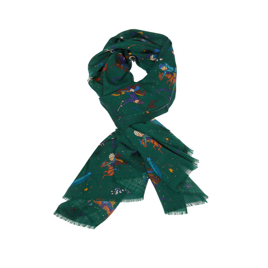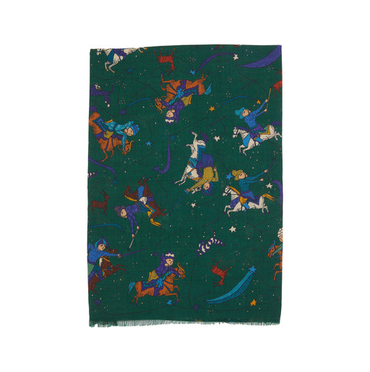 Drake's Mughal and Stars Print Wool Scarf in Green