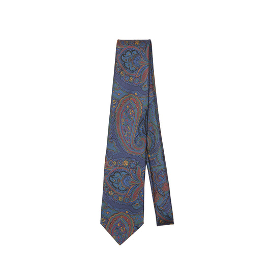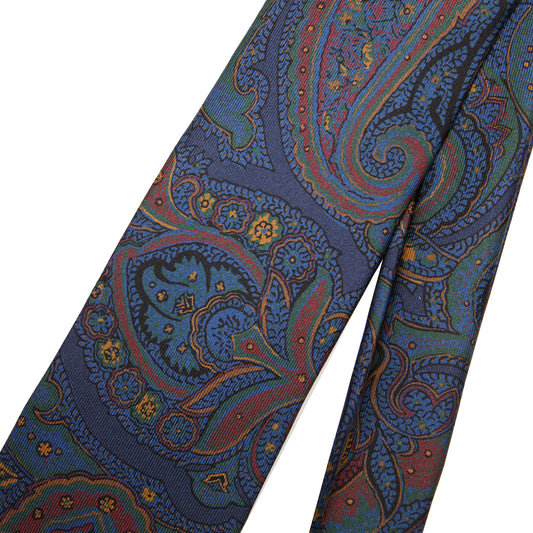 Drake's Large Paisley Madder Silk Tie in Navy