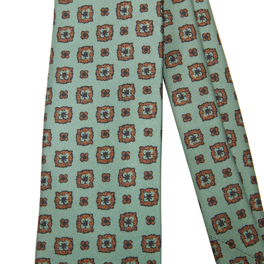 Drake's Flower Medallion Silk Tie in Green