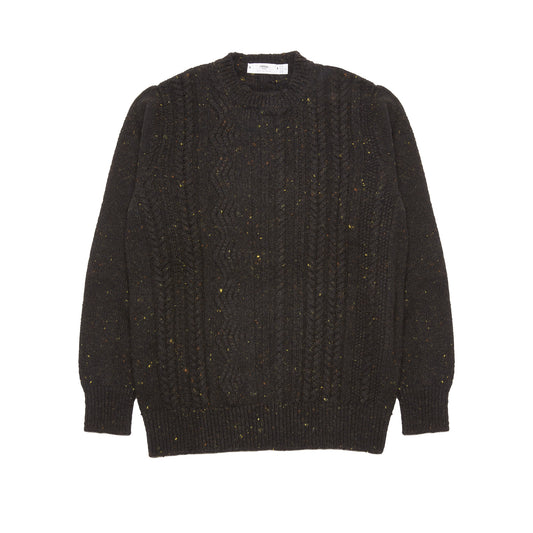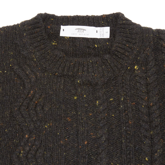 Inis Meáin Cashmere/Merino Ridges Aran Jumper in Natural Black Fleck