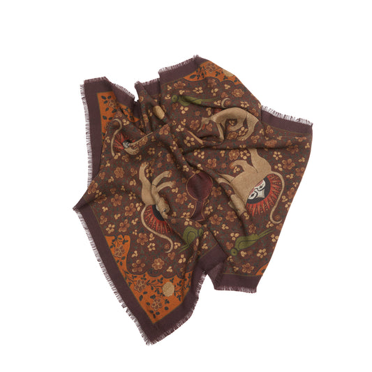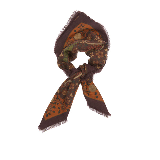De Bonne Facture Ispahan Folk Pattern Wool Bandana in Brown