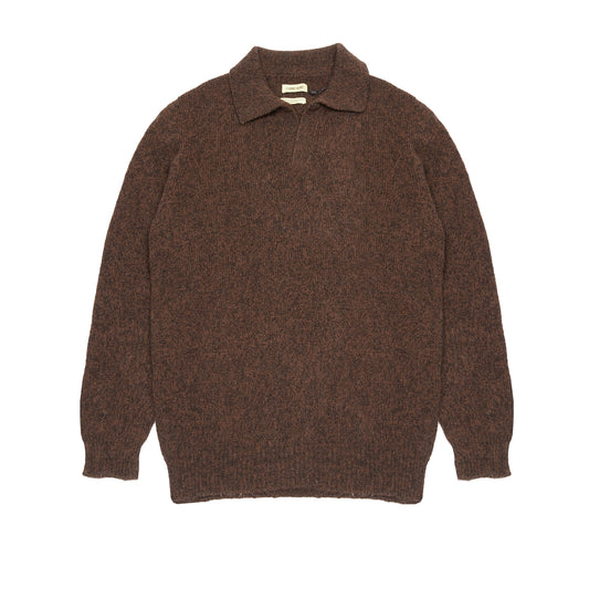 De Bonne Facture Wool Polo Shirt in Heathered Bark Brown
