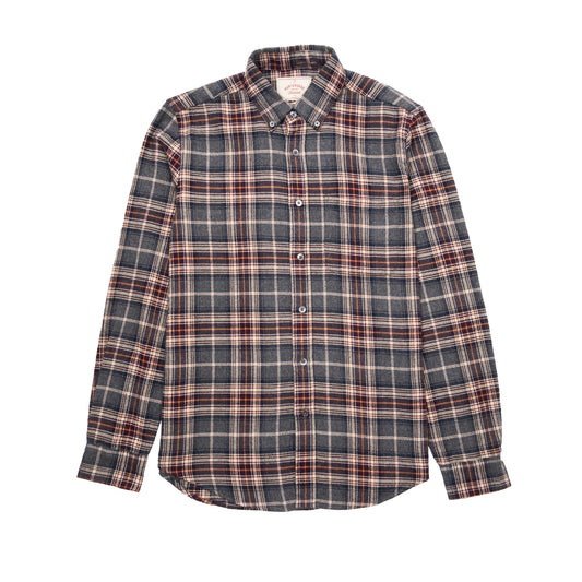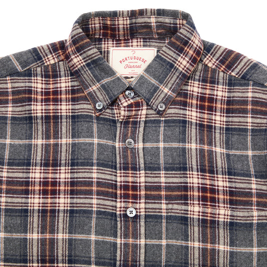 Portuguese Flannel Augusta Flannel Button Down Shirt in Charcoal x Burgundy Check