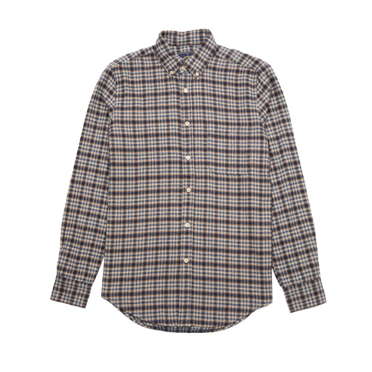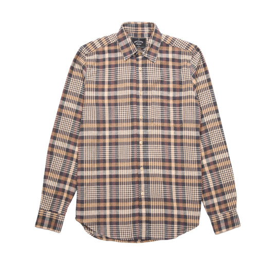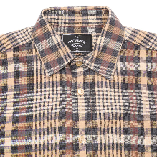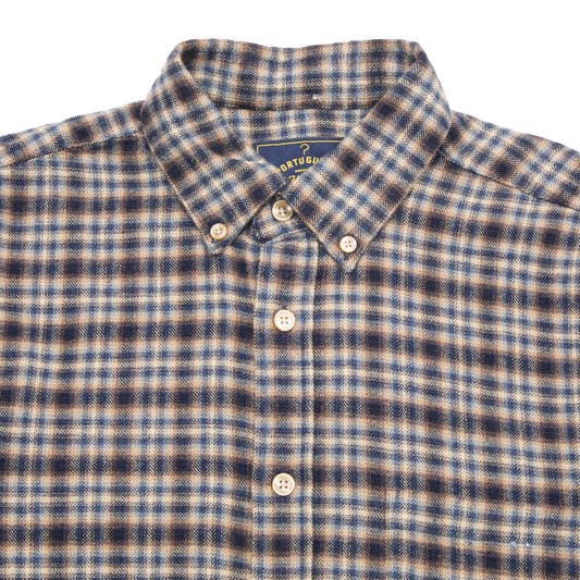 Portuguese Flannel Manta Flannel Shirt in Camel x Natural x Blue Check