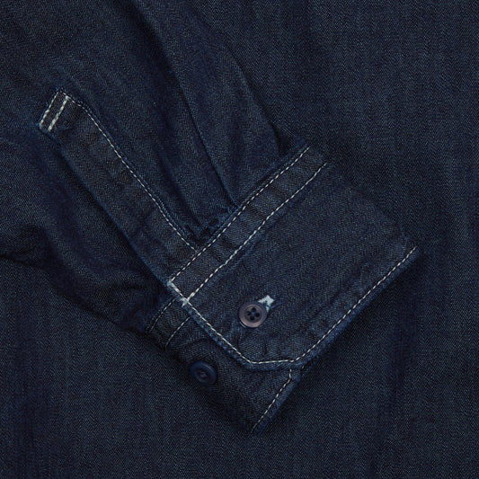Sage De Cret Heavy Oxford Short Point Collar Shirt in Navy