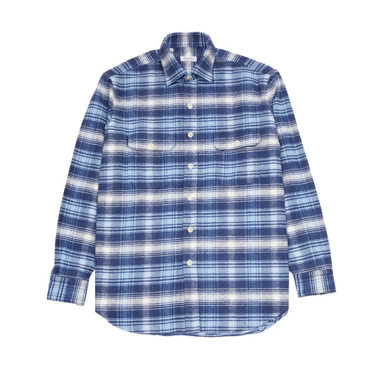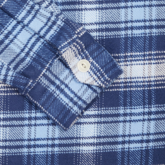 Salvatore Piccolo Mirko Cotton Flannel Overshirt in Blue Check