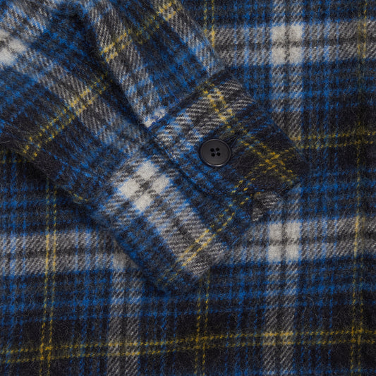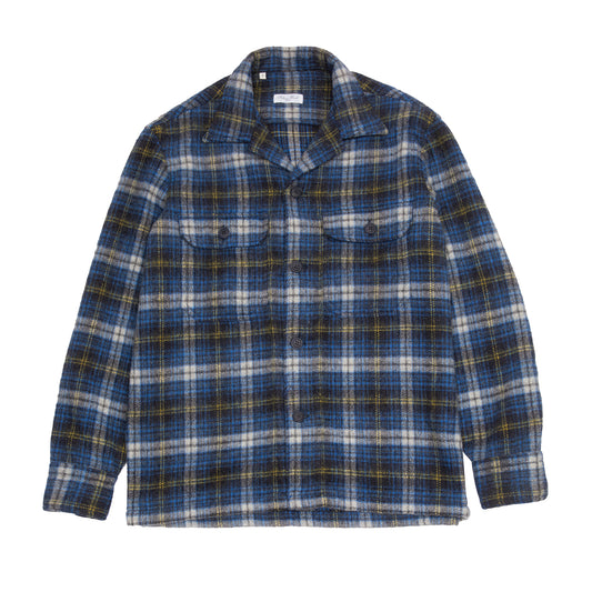 Salvatore Piccolo Vietnam Wool Flannel Overshirt in Blue/ Yellow Check