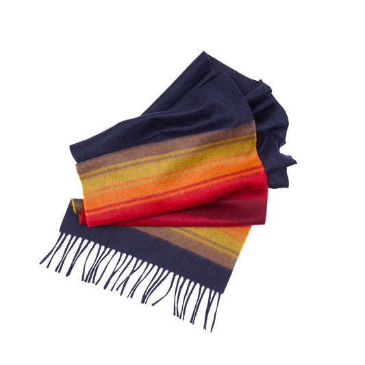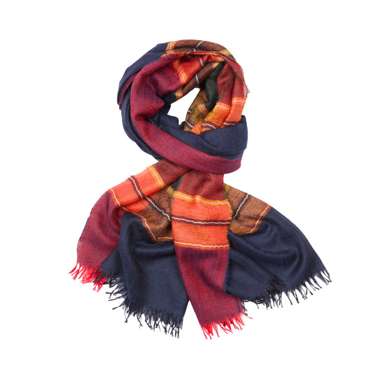 Begg & Co Staffa Eduardo Cashmere/Silk Scarf in Navy Orange