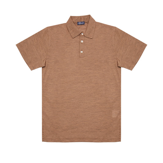 Albeni Merino Polo Sport Short Sleeve Shirt in Terracotta Melange