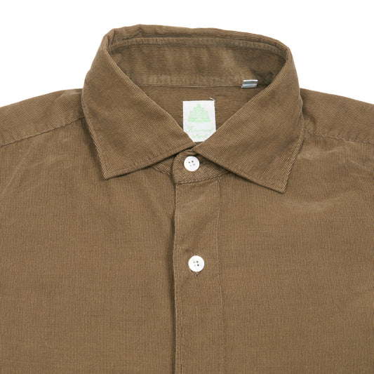 Finamore Tokyo Luigi Cotton Needlecord Shirt in Tobacco