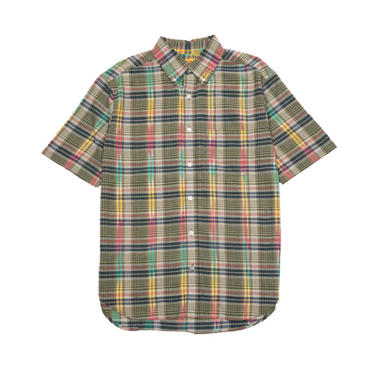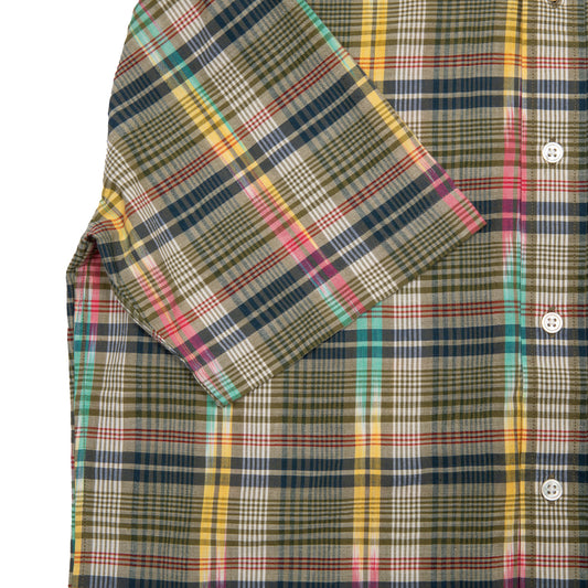 Original Madras Classic Button Down Short Sleeve Shirt in Green/Blue/Yellow