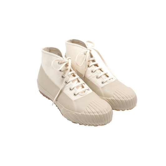 MoonStar Company has been producing their minimal, functional footwear in Kurume, Japan for over a century. Best known for their clean designs, solid construction, and vulcanised soles, each pair of Moonstar shoes is completely hand-made before being fired in a kiln at 120 °C (248 °F) for 70 minutes to ensure a hardwearing and flexible finish. These were made for walking.
