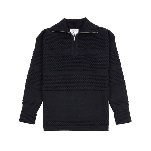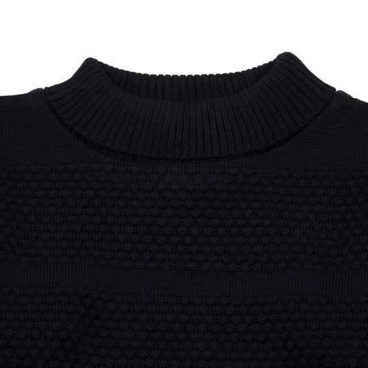 SNS Herning have been making classic Danish fisherman jumpers in Jutland, Denmark since 1919. Still produced on vintage machines, the knitwear is much loved for its substantial “bobble” pattern, created to offer added protection from the biting winds of the North Sea. Pleasingly minimal, distinctly modern garments that make plain sailing of chilly weather.