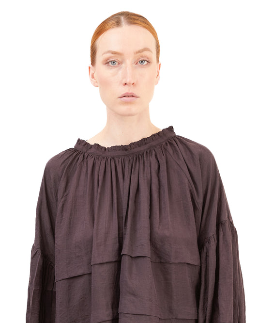 Runaway Bicycle Astrid Pleated Silk Blouse in Midnight Wine