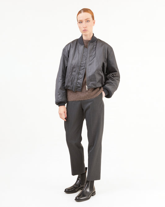 Aton Women's Cowhide Nylon Short Sized MA-1 in Charcoal Grey