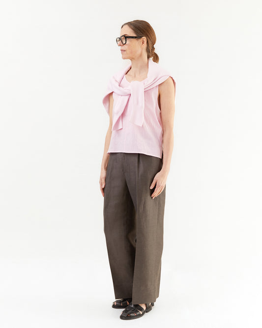 Aton Women's Silk Linen Shantaung Shirt Vest in Navy Pin Stripe