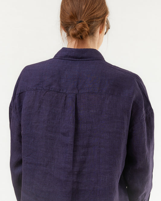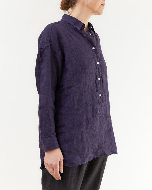 Finamore Women's Maraj Popover Linen Shirt in Purple Indigo