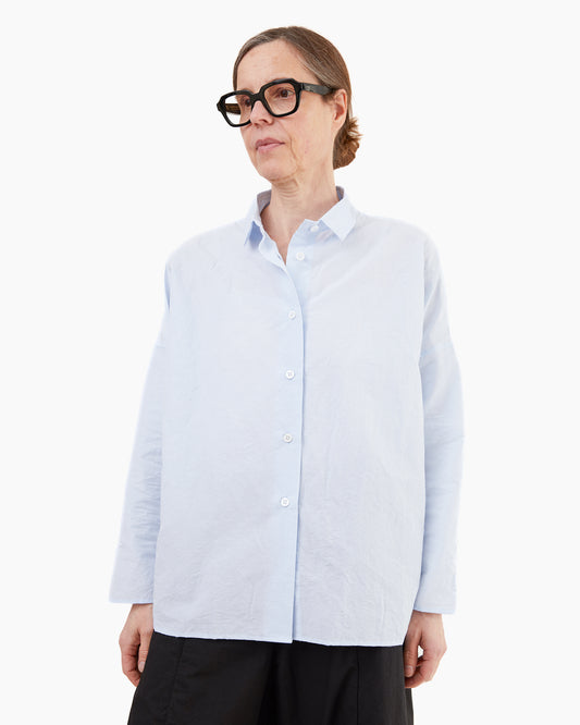 Pas de Calais Washed Cotton Crinkle Stand Collar Shirt in Saxe Blue