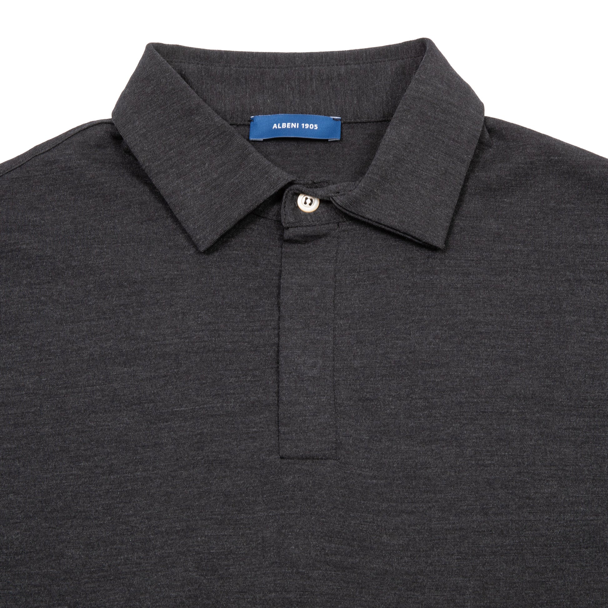 Albeni Merino Long Sleeve Polo Shirt in Charcoal Grey