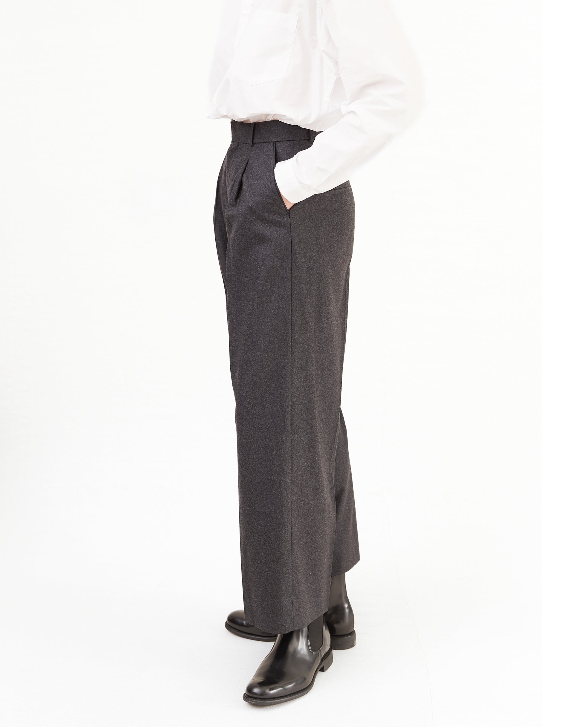 Aton Women's Merino College Flannel Tucked Wide Pants in Charcoal