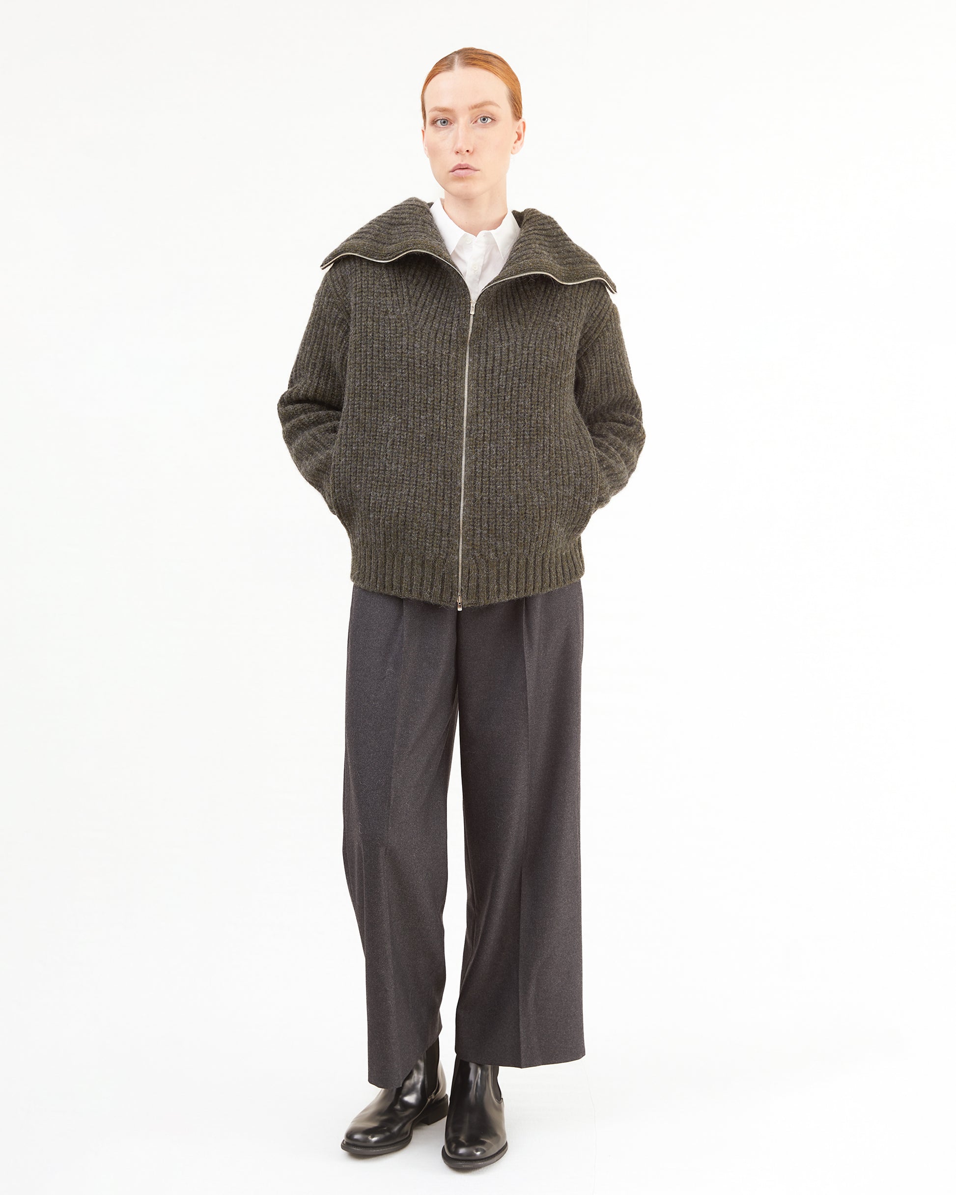Aton Women's Wool Alpaca Cashmere Zipper Cardigan in Khaki