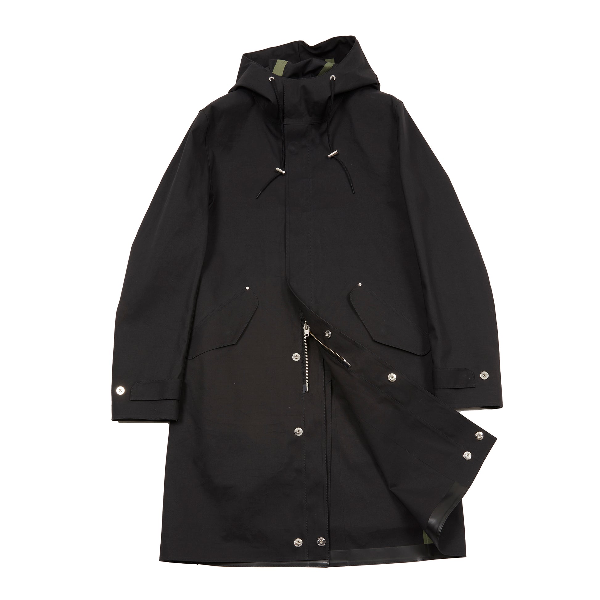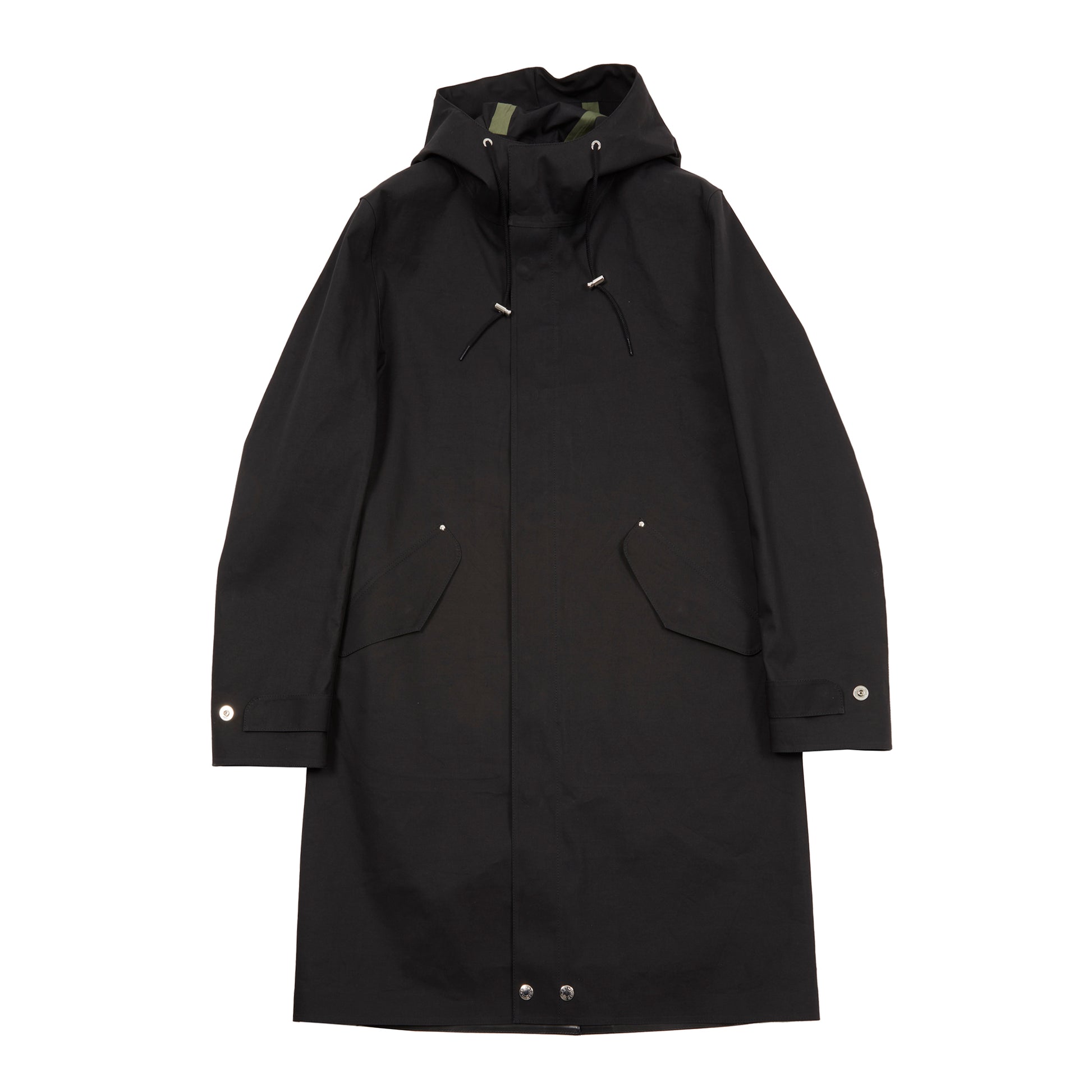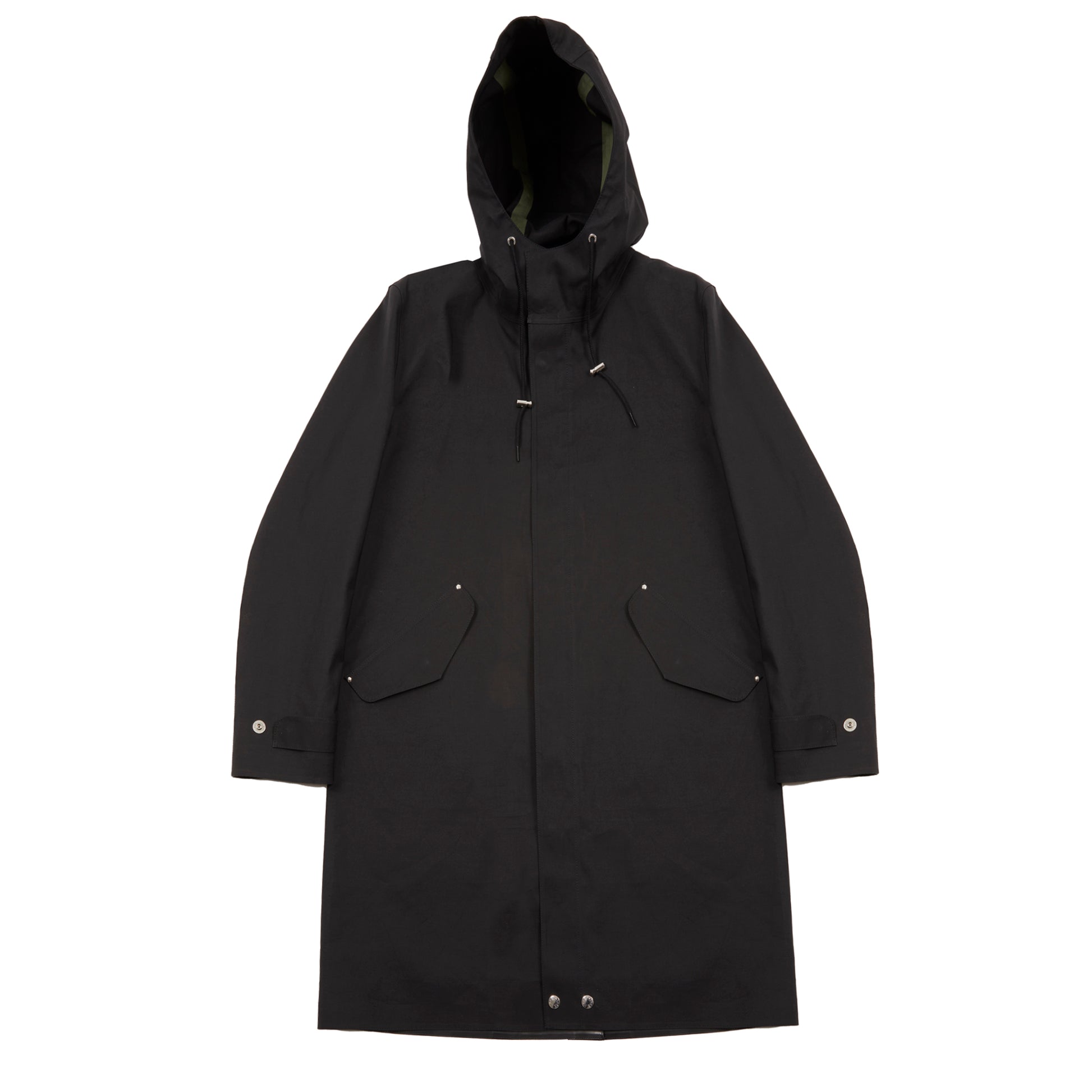 Granish hooded parka finished with fully taped seams, two pockets and drawstring hood. Hand-made using the original Mackintosh bonded cotton fabric that provides unmatched protection from the elements.
