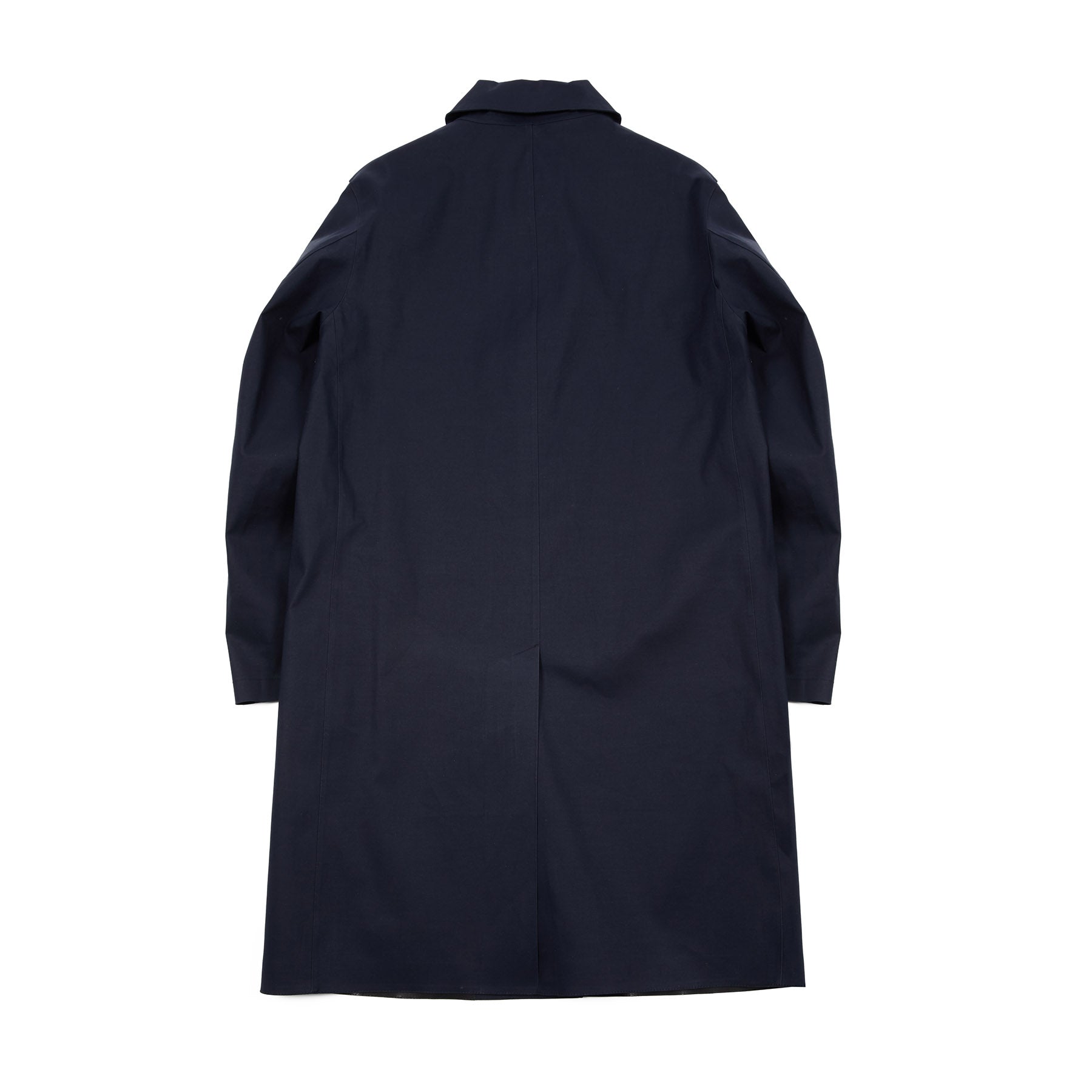 Classic raincoat with throat latch detail with underarm eyelets and hand-finished, fully-taped seams. The concealed front closure and 3/4-length design keep the overall look clean-cut and contemporary.