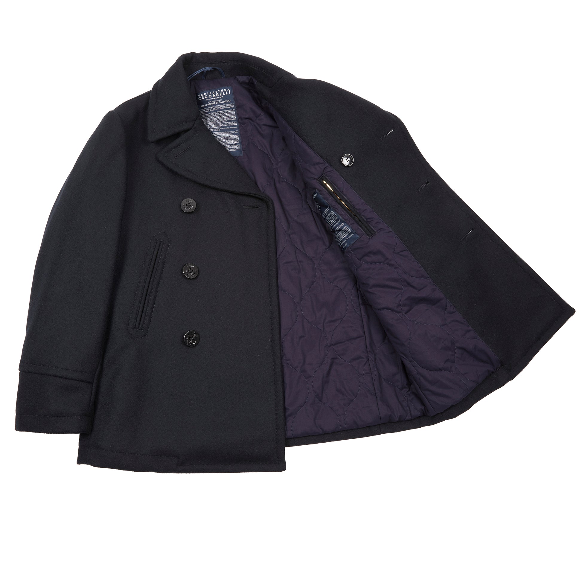 Manifattura Ceccarelli New Wool Pea Coat in Navy