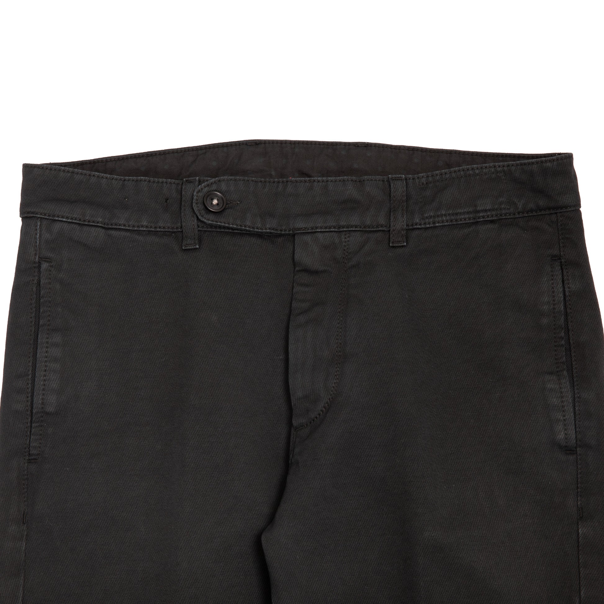 Casual flat-front trouser in 100% cotton twill with a denim-like weight and feel.