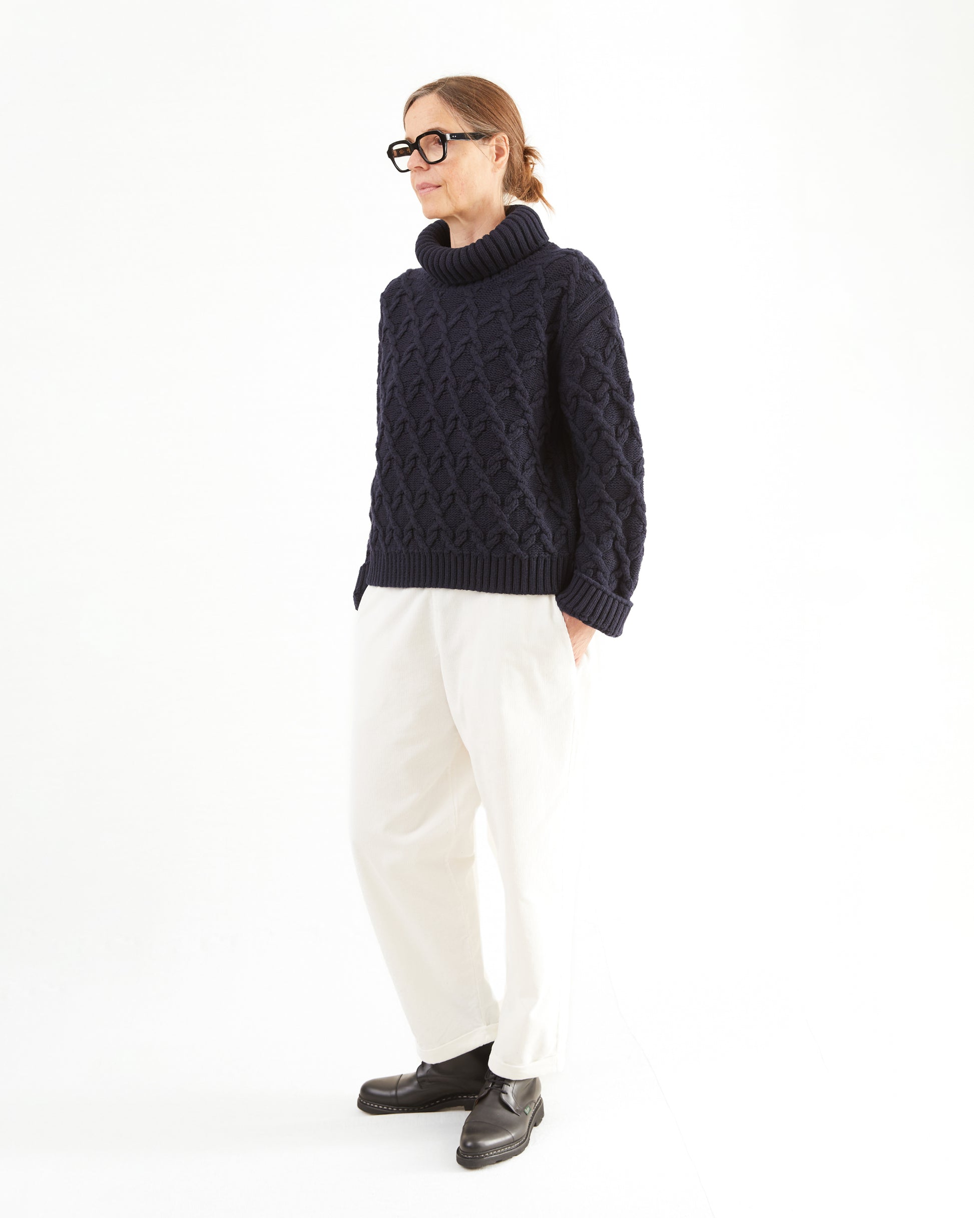 Classic heavyweight rollneck jumper in a cable knit, ribbed cuffs and collar in a soft cashmere and virgin wool blend.