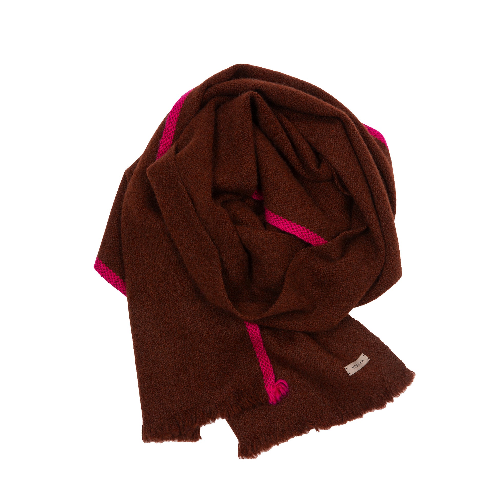 Norlha Nomad Border Skinny Scarf in Mulberry & Fuschia
